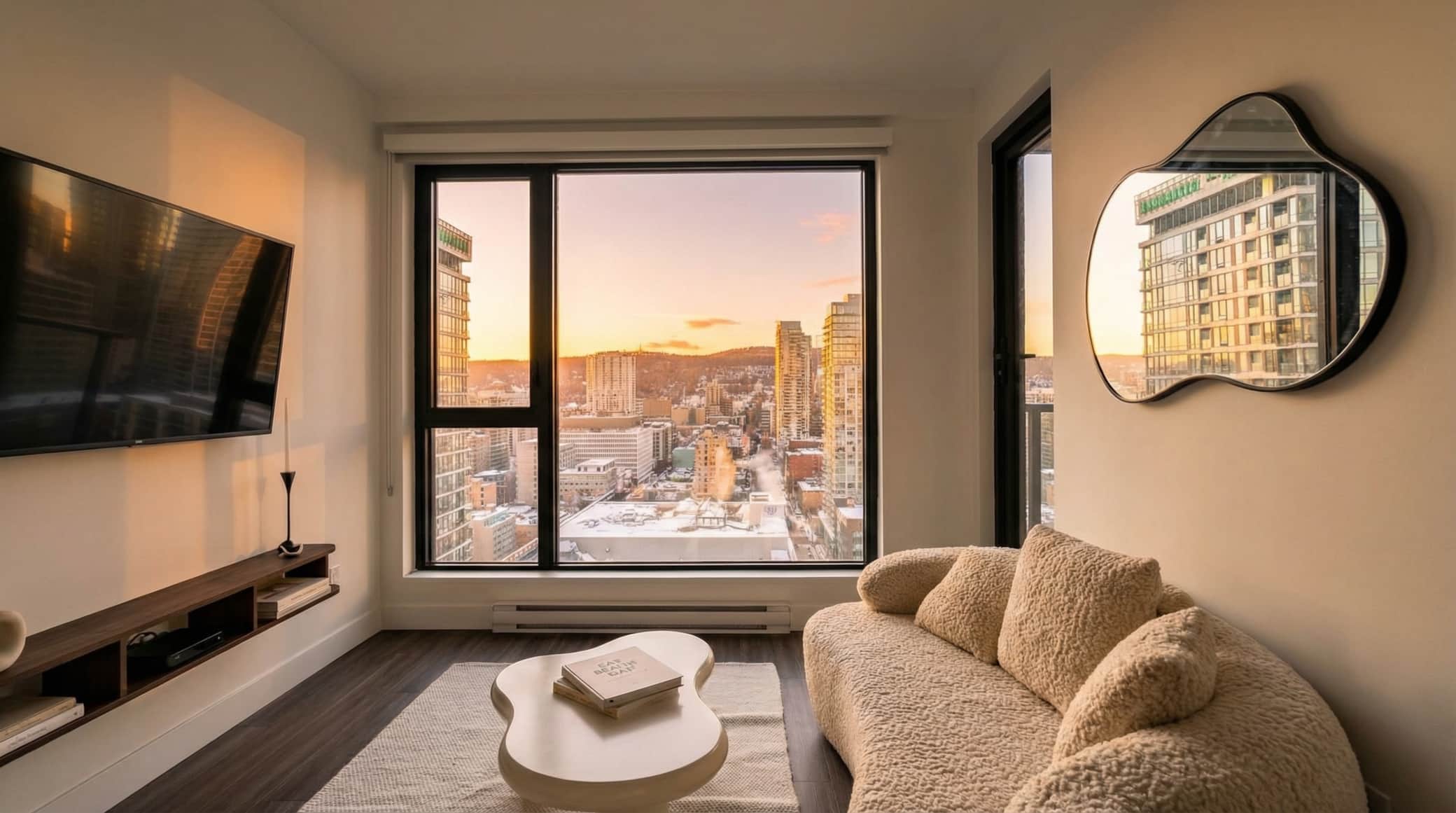 🌟 34e étage - hauteur exceptionnelle offrant calme absolu, luminosité maximale et perspective aérienne unique sur Montréal